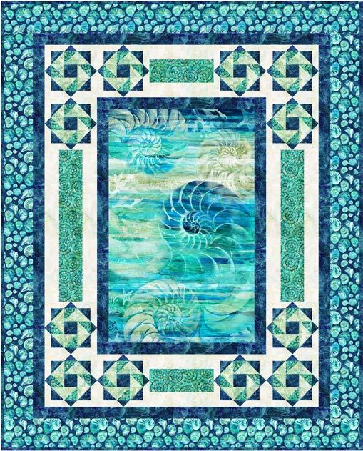 44 VITAMIN SEA PATTERNS I PTN3107 REFLECTIONS 63 1/2” x 84 1/2” Pattern includes two color options as shown By Tammy Silvers of Tamarinis Great class opportunity and skill builder – working with Wedge Star to build kaleidoscope style blocks Limited fabrics make it easy to kit Seashell Blue Free Shop Sample DQ3106 C PTN3106 WHORL WHIMSY 61” x 76” By Bound To Be Quilting The half square triangle “whorl” blocks on the corner of this design mimic the nautilus shell in the center panel and complete the “undersea” look KIT CHART PG.95 KIT CHART PG.95