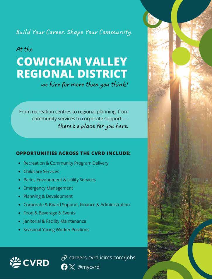 Hours subject to change based on facility needs, please monitor the CVRD website and follow us on social media for up-to-date information.