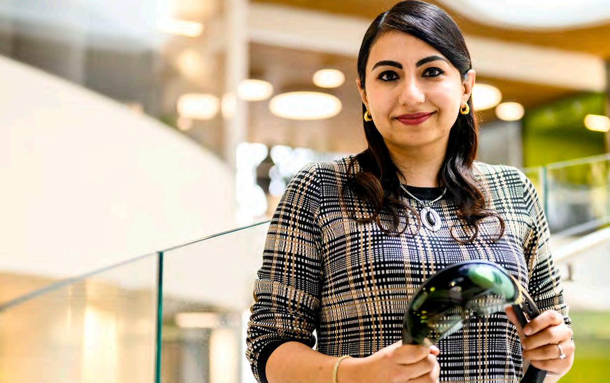 Shown is Soheil Farazi, PhD’24, electrical engineering, who is working with Professor Srinivas Tadigadapa. They are using quantum mechanical techniques to develop optical microchips that will revolutionize infrared spectroscopy by reducing the need for bulky and costly palmtop machinery, making the process more accessible. Scan the QR code to read the full story.
