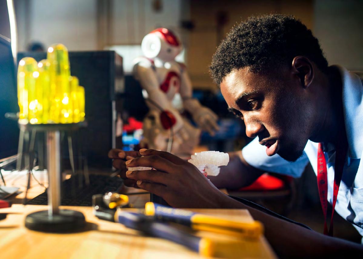 Doctoral student James Tukpah, computer engineering, is a double Husky, earning both his BS in electrical engineering and MS in robotics from Northeastern. He is a research assistant at the Institute for Experiential Robotics.