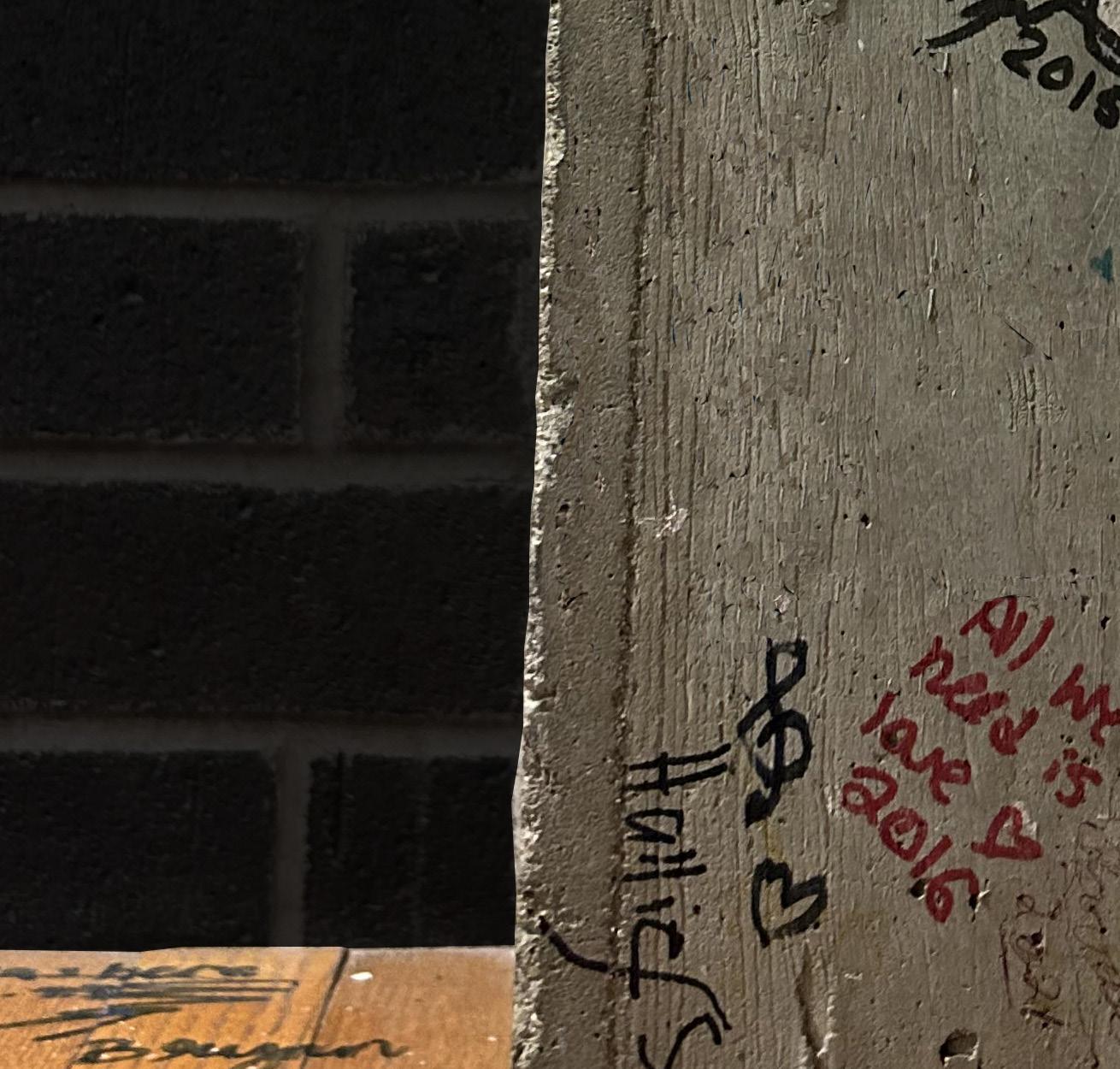 Tucked away in a quiet corner of Maucker Union sits a hidden message board. In an alcove, a wooden bench and a nearby concrete pillar and brick wall have been decorated with over a decade of small graffiti messages. Sharpie markers have left notes like “Life’s too short, be happy,” “The world is YOURS,” “Class of ’14” and countless signatures from past and present students.