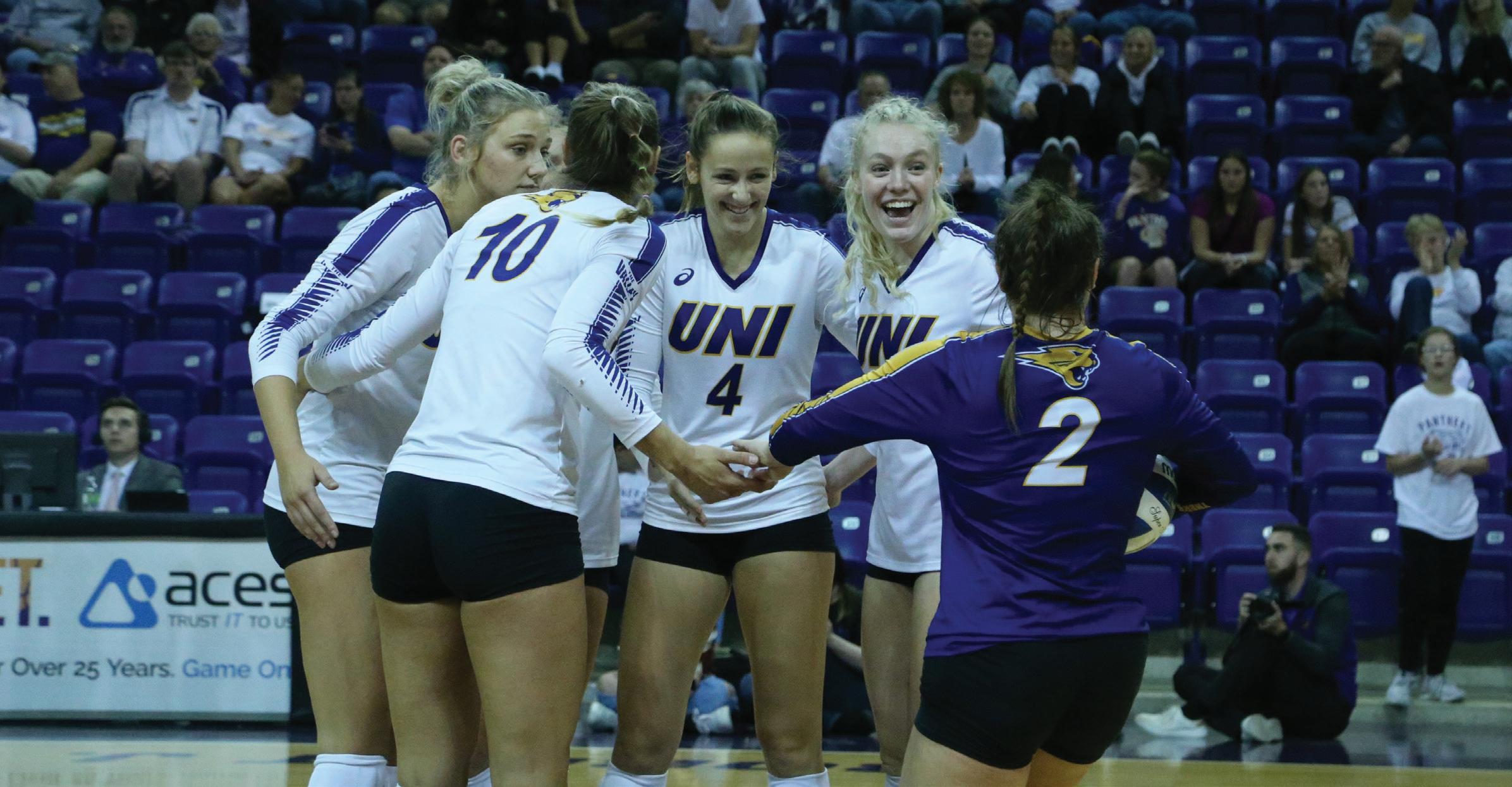 UNI defeated Missouri State in four sets on Saturday to clinch an outright Missouri Valley Conference regular season championship.