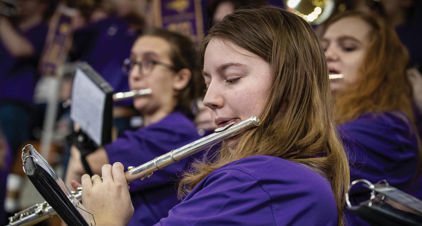 Professor Justin Mertz, associate director of bands, explained that pep band is a partnership between the School of Music, the College of Humanities, Arts & Sciences and UNI Athletics.