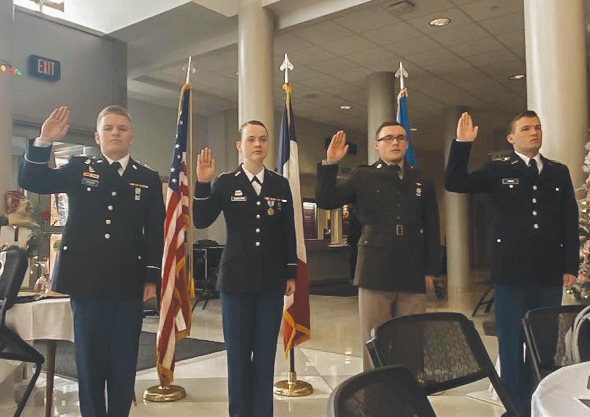 Cadets Dylan Carlsen, Dani Danielson, Wyatt Fitzgerald and Colin Spies were celebrat ed in the Gallagher Bluedorn Performing Arts Center for contracting with the military