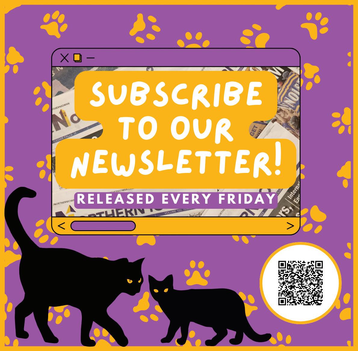 SEND US STORY IDEAS Tell us what’s happening on campus. Email submissions to northern-iowan@uni.edu. Do you want to have an event listed here? Email us at northern-iowan@uni.edu with information about the event to have it featured.