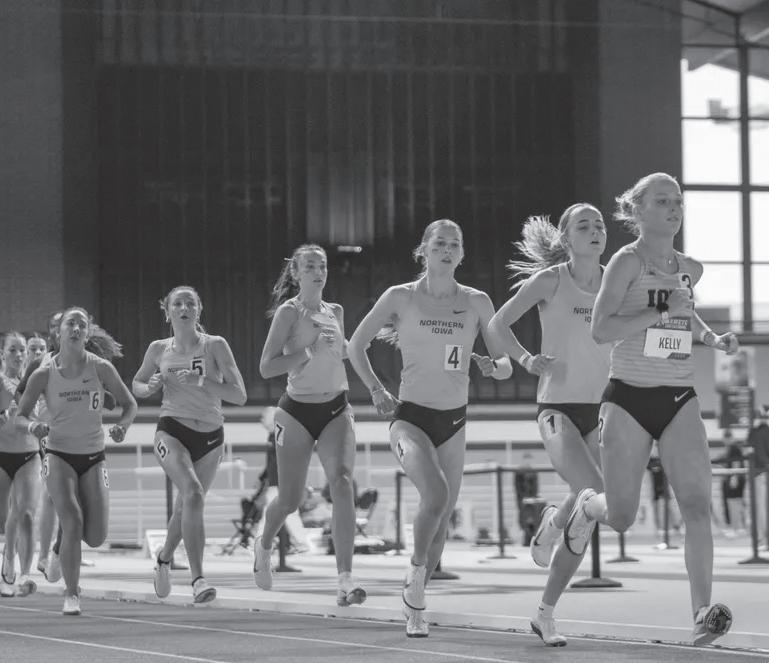 new meet-record time of 10:00.90. Senior teammate Melody Ochana also dipped under the previous record time of 10:17.73, earning second in 10:03.26. Colin Lille ran 8:25.32 for sixth place in the men’s race. UNI produced many notable performances across the 200m, starting on the women’s side with Emma Randecker’s second-place, 24.38-second effort. Joey Perry also ran 24.62 for fourth. For the men, Parker Kiewiet captured the victory in 21.31, while teammates Tyler Sickerson and Luke Nevitt were not far behind. Sickerson finished fifth in 21.97, while Nevitt came in sixth with a time of 22.07.