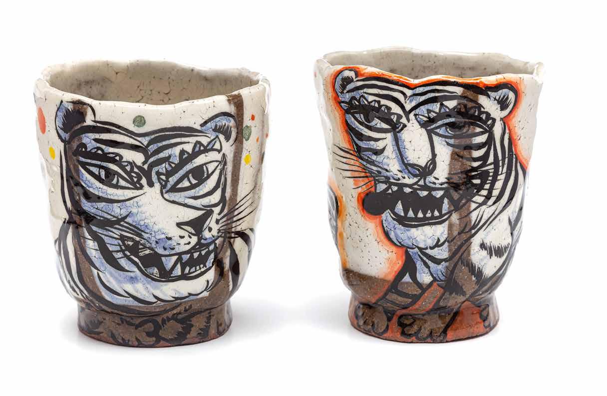 Witness the cooler-than-a-snowcone pottery from the minds of Mert and Murton. Step right up, and test your skill and technique as you create a cup and planter under the direction of these two fabulous makers. Mert will demonstrate the slab-built drinking vessels using their veneering technique that employs multiple-colored clay bodies to create a terrazzo-like surface effect. Murton will guide your creations to include facial features sure to put a grin on your own face! Participants will use AMACO underglazes, Mert’s stencils, and Murton’s “house” slips to create beautiful visual noise!