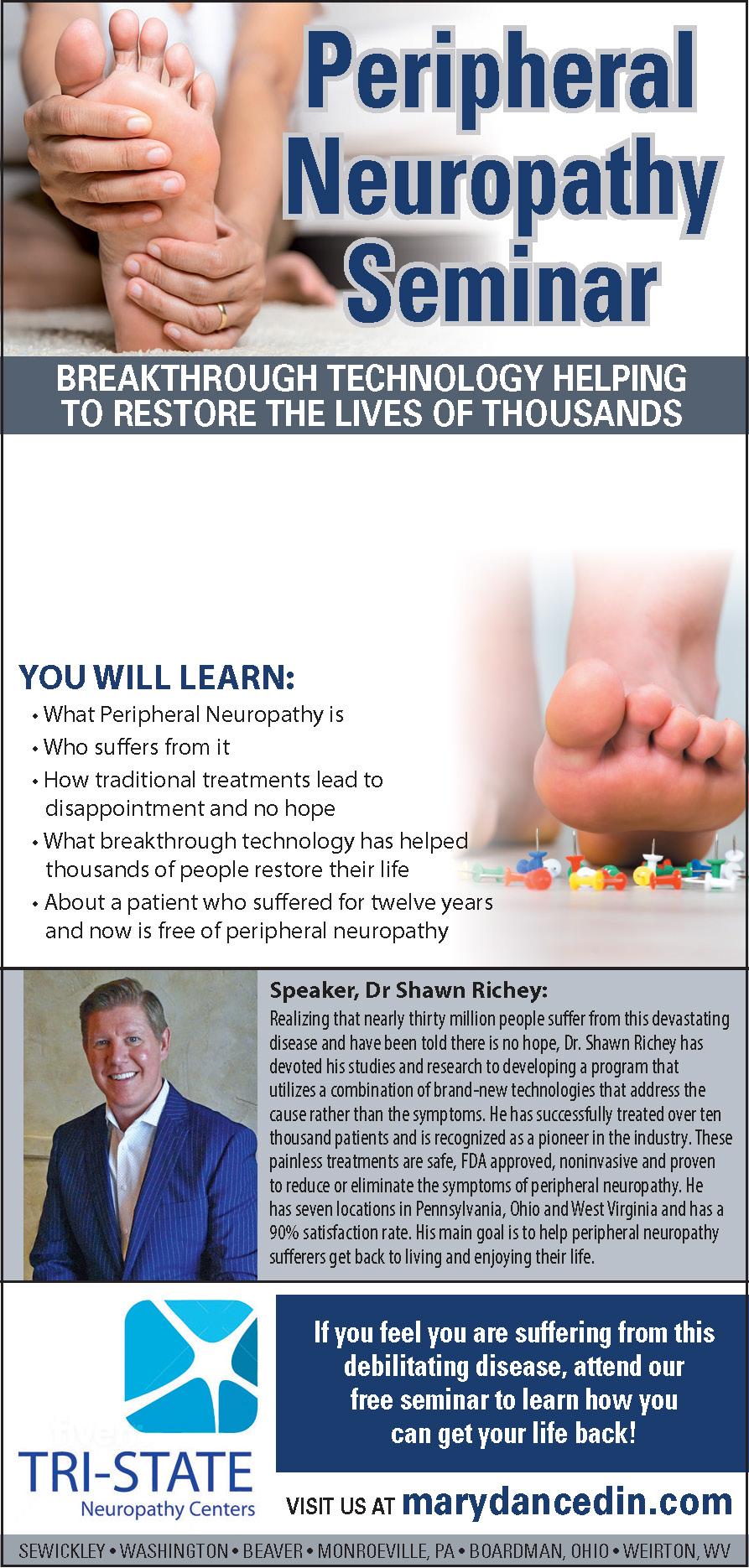 Peripheral Neuropathy occurs when nerves are damaged or destroyed and can’t send messages to the muscles, skin and other parts of the body. Peripheral nerves go from the brain and spinal cord to the arms, hands, legs and feet. When damage to the nerves takes place, numbness and pain in these areas may occur. A specialized treatment protocol utilizing brand new technologies is available at TRI-STATE NEUROPATHY CENTERS. It includes the combination of very specific, noninvasive, FDAapproved and painless treatments that are designed to get rid of symptoms of peripheral neuropathy.