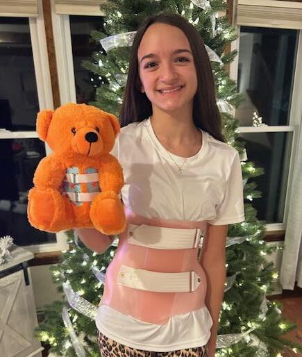 “A little while after I got my brace, my mom surprised me with a Higgy Bear sent to my house. It was a Taylor Swift-themed bear, orange like her new album, The Life of a Showgirl. The package even had some stickers, and one said ‘life of a scoli girl,’ which I put on my brace right away,” Libby said.