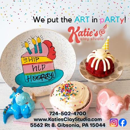 Gift cards are available for pottery painting experiences, making them the ideal present for any budding artist. To book your child’s unforgettable birthday party, visit our website or contact us at 724-502-4700. Be sure to reserve your spot early, especially during busy holiday seasons. Let Katie’s Clay Studio turn your child’s birthday into a colorful and joyous celebration they’ll cherish forever. n