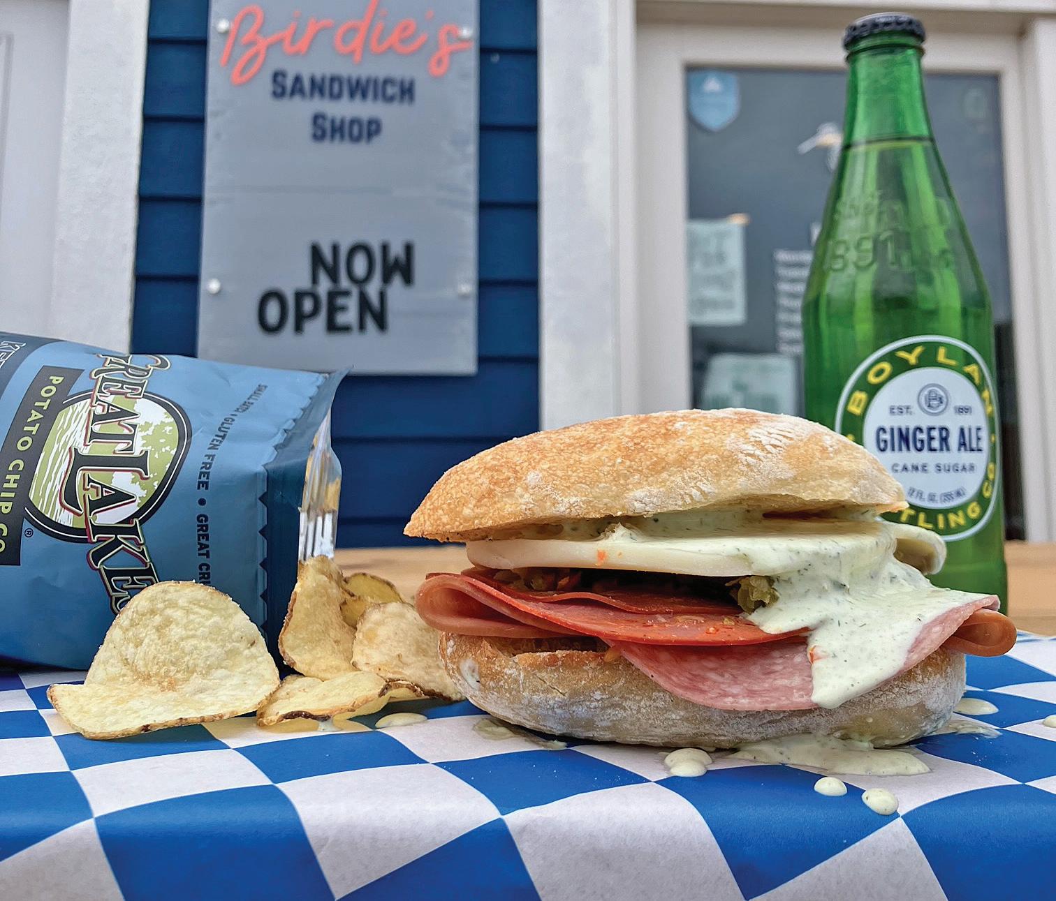 It’s nearly beach bag season, folks, and you know what that means: time to nail down your sandwich rotation! For our first al fresco summer adventure, find us flocking to The Spicy Sparrow at Birdie’s Sandwich Shop in Suttons Bay. Modeled after the Muffuletta (a New Orleans staple with flavors rooted in Sicily) and named for Italy’s national bird, this handheld features layers of savory Capicola, hard salami, ham, and provolone served on fresh-baked 9 Bean Rows ciabatta and is finished with zippy giardiniera veggies and “flock sauce,” aka, Duke’s mayo spiked with fresh parsley and garlic. Enjoy one classically cold-cut style or hot from the panini press; either way, all that’s missing is one of the café’s canned lattes and plenty of SPF! Prep your picnic at 206 N. St. Joseph St., Suite D. hive-coffee.com/ birdiessandwichshop