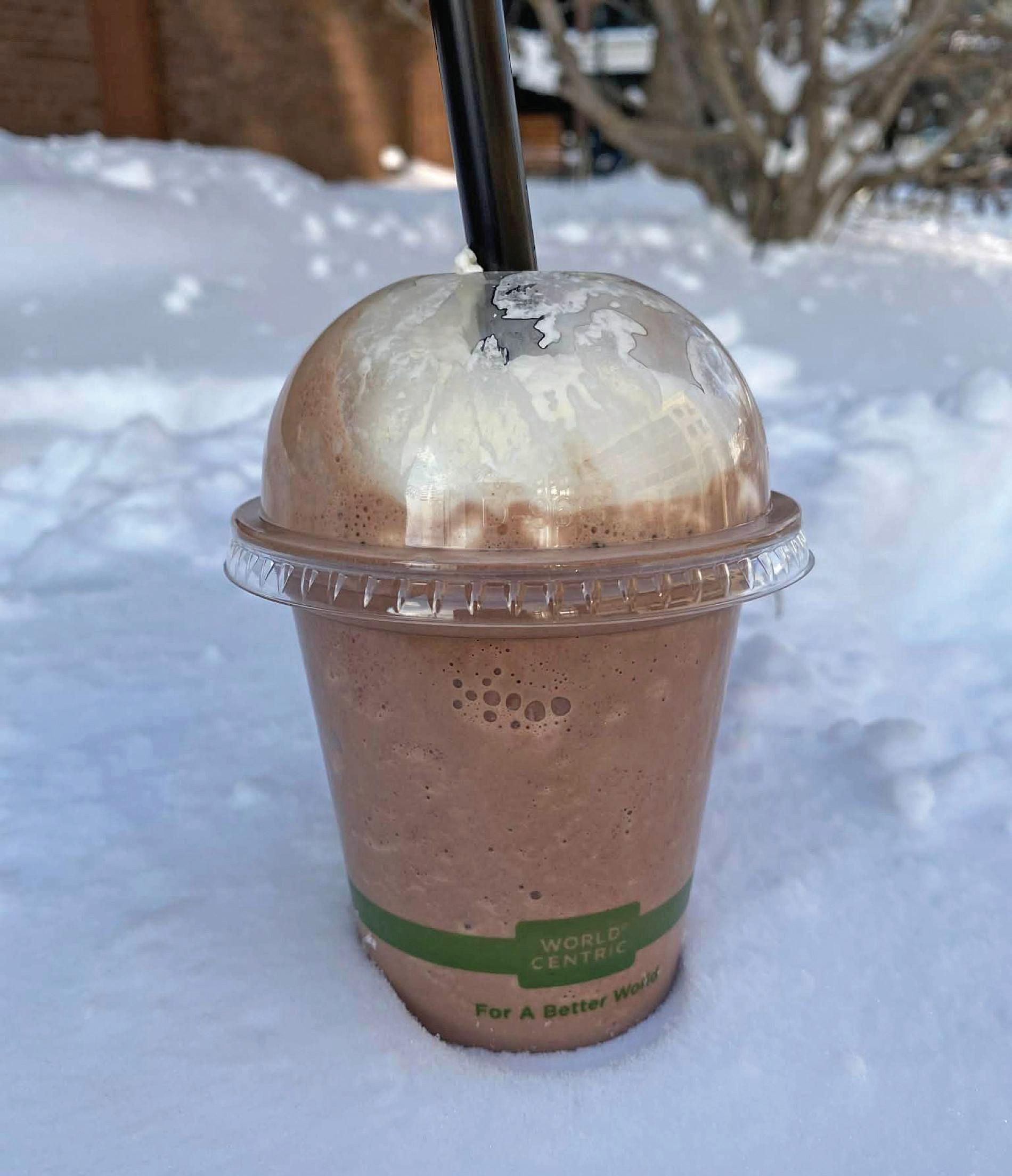 We’ll happily brave treacherous blizzard conditions for the promise of sweet and chocolatey treasure at the end of our trek! It’s all about pure dessert bliss at this Traverse City ice creamery, as their cakes, confections, and coffees are all free of GMOs and artificial additions. That means this deeply-chocolatey sip comprises only grass-fed milk and a heaping scoop of homemade chocolate ice cream (ingredients: locally and regeneratively farmed dairy, organic sugar, pink sea salt, vanilla extract, and two types of top-tier chocolate). It’s the creamy, richly cocoa-y answer to our sweetest dreams, made even more indulgent with a dollop of vanilla-spiked whipped cream on top. Oh, and don’t forget a finishing drizzle of house chocolate sauce! Your confectionary quest begins at Milk & Honey (240 E. Front St.) in Traverse City. milkandhoneytc.com
