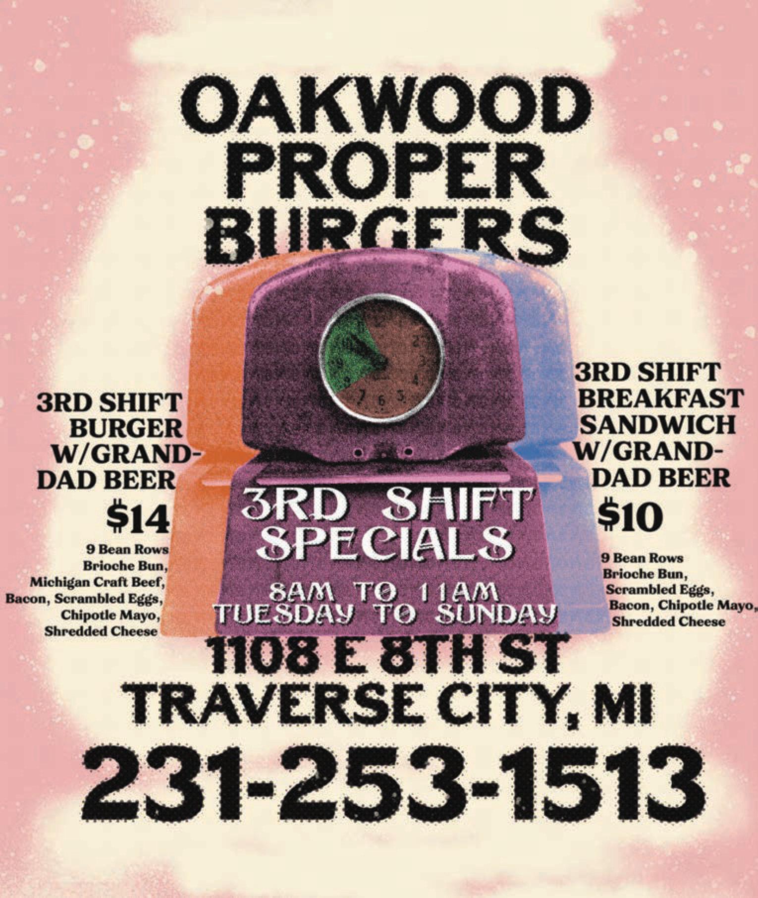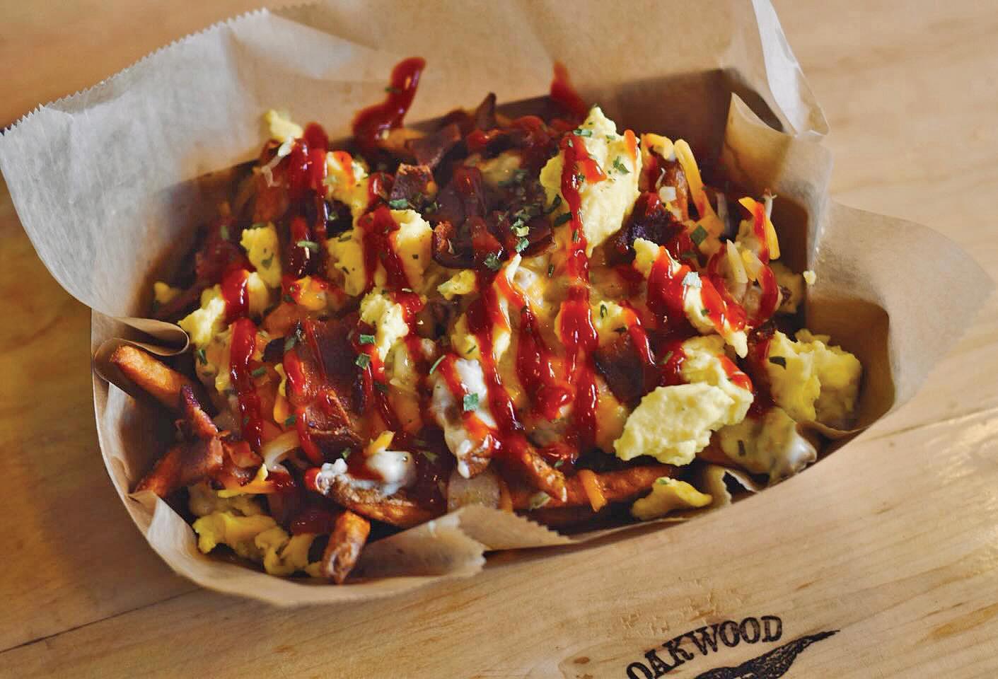 Did you know that TC’s Oakwood Proper Burgers now does equally proper breakfast every day of the week? The retro burger joint made the expansion from weekends late last year, and there’s now plenty to choose from Monday through Sunday. The Breakfast Fries ($11) are a must, filling that potato-sized hole in your belly and then some. The fries are topped with sausage, bacon, shredded cheese, and then leveled up with spicy ketchup and rosemary gravy. Whether you pair the fries with a breakfast sandwich or go for something a little sweeter—we’re fans of the Cinnamon Biscuit ($5), made fresh with Bay Bread biscuits— you’ll be glad you started your day under that pink and gold awning. (P.S. On Sundays, breakfast is served all day!) Find Oakwood at 1108 E Eighth St. in Traverse City.