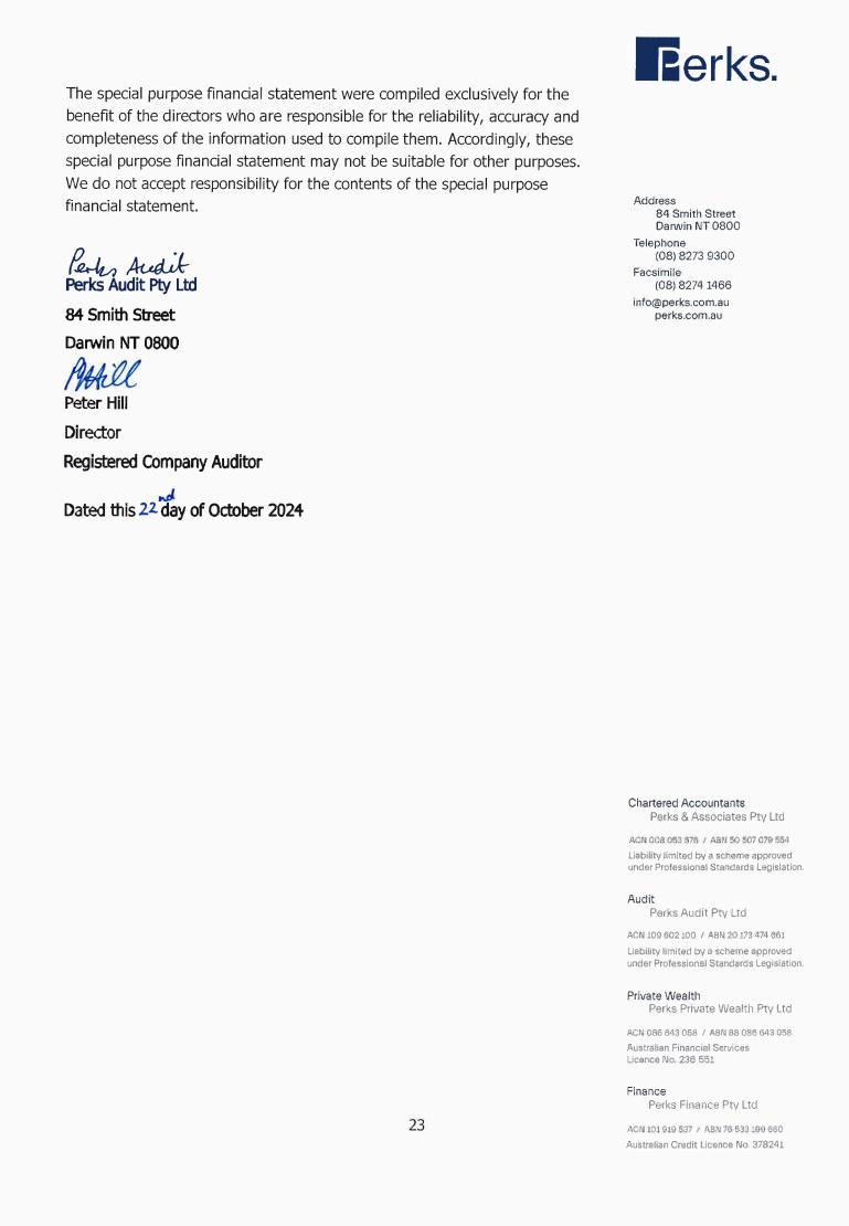 On behalf of the Board of Northern Territory Cricket Limited I am pleased to report on the activities of the organisation for the year 20232024 This report ends the 45th year of our operation and signifies the end of my term as a Board Member and President of NT Cricket after 40 plus years of involvement (18 years as Vice-President and 22 years as President)