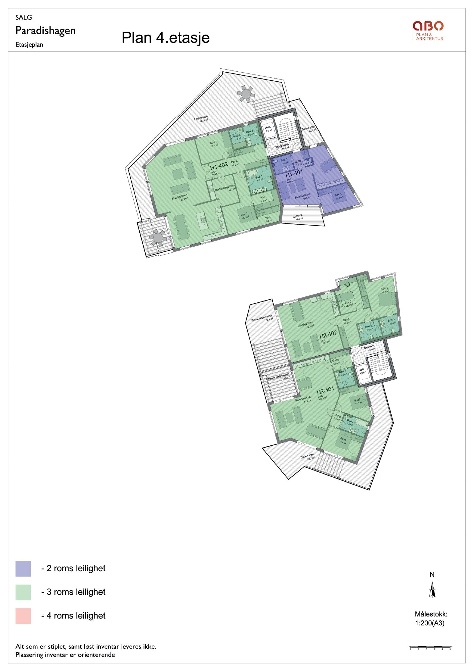 Salgsprospekt og prosjektbeskrivelsen er utarbeidet for å orientere om prosjektets generelle bestanddeler, funksjoner og planlagte organisering, og er således ikke en komplett beskrivelse av leveransen. Det vises for øvrig til salgstegninger og kjøpekontrakt med vedlegg. Alle illustrasjoner, 3D animasjoner, skisser,” møblerte” plantegninger m.m. er kun ment å danne et inntrykk av den ferdige bebyggelsen, og kan ikke anses som endelig leveranse. Inntegnet utstyr/inventar medfølger ikke, bortsett fra hvitevarer. Det kan derfor fremkomme elementer i presentasjonsmaterialet som ikke inngår i leveransen. Inventar som er merket med stiplete linjer medfølger ikke. Generelle beskrivelser av prosjektet i salgsog markedsføringsmateriell vil ikke passe for alle boligene. Kjøper oppfordres særskilt til å vurdere solforhold, utsikt og beliggenhet i forhold til terreng og omkringliggende eksisterende og fremtidig bygningsmasse mv. før et eventuelt kjøpetilbud inngis.