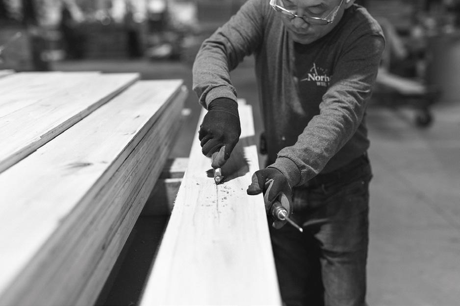 NORTHERN WIDE PLANK DESIGNS AND MANUFACTURES ONE-OF-A-KIND ENGINEERED HARDWOOD FLOORING, WALL CLADDING, RECLAIMED BOX BEAMS, AND ARCHITECTURAL WOOD ELEMENTS FOR RESIDENTIAL AND COMMERCIAL ENVIRONMENTS. EACH OFFERING IS COMPLEMENTED BY MATCHING STAIR TREADS, NOSING AND VENTS, CRAFTED FROM THE EXACT SAME MATERIAL TO ENSURE A SEAMLESS DESIGN.