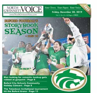 2019: Buford’s storybook season - December 20, 2019 - Vol. 3 No. 25 - First-year head football coach Bryant Appling and his team faced adversity numerous times during the season. They beat 7-A powerhouse teams and traveled over 900 miles in the postseason playoffs to reach the final game at Georgia State University playing Warner Robins. An overtime field goal would be enough to give Buford the 1714 win resulting in Buford High School’s 12th football state championship title.