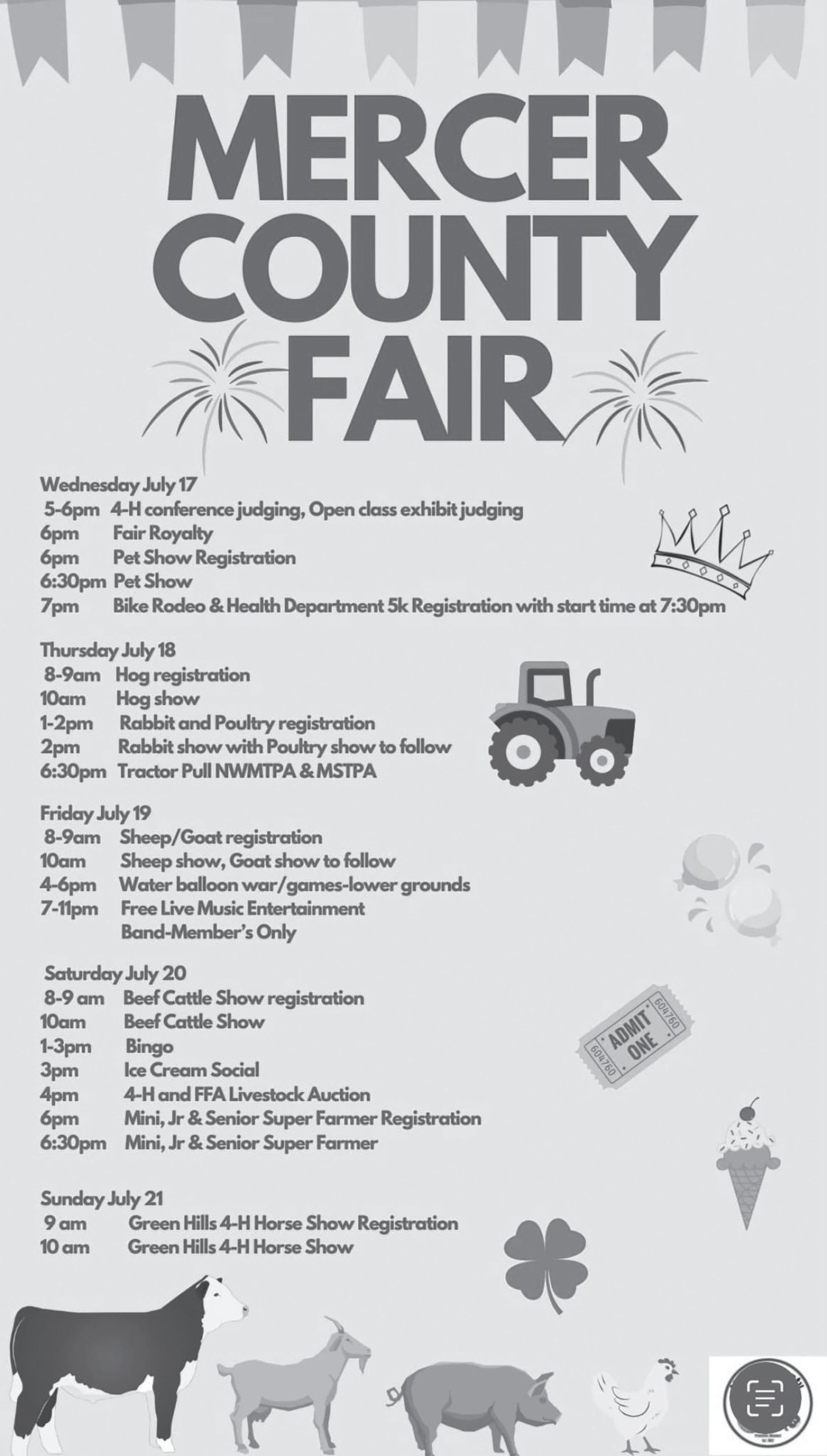 Dr. Tammy and Spencer Hart told members the Arena Association and Mercer County Area Development is planning on holding a mounted shooting show and a “people hauler” during CJ Days. A discussion was held about corn hole games, horseshoes and a chain saw artist.