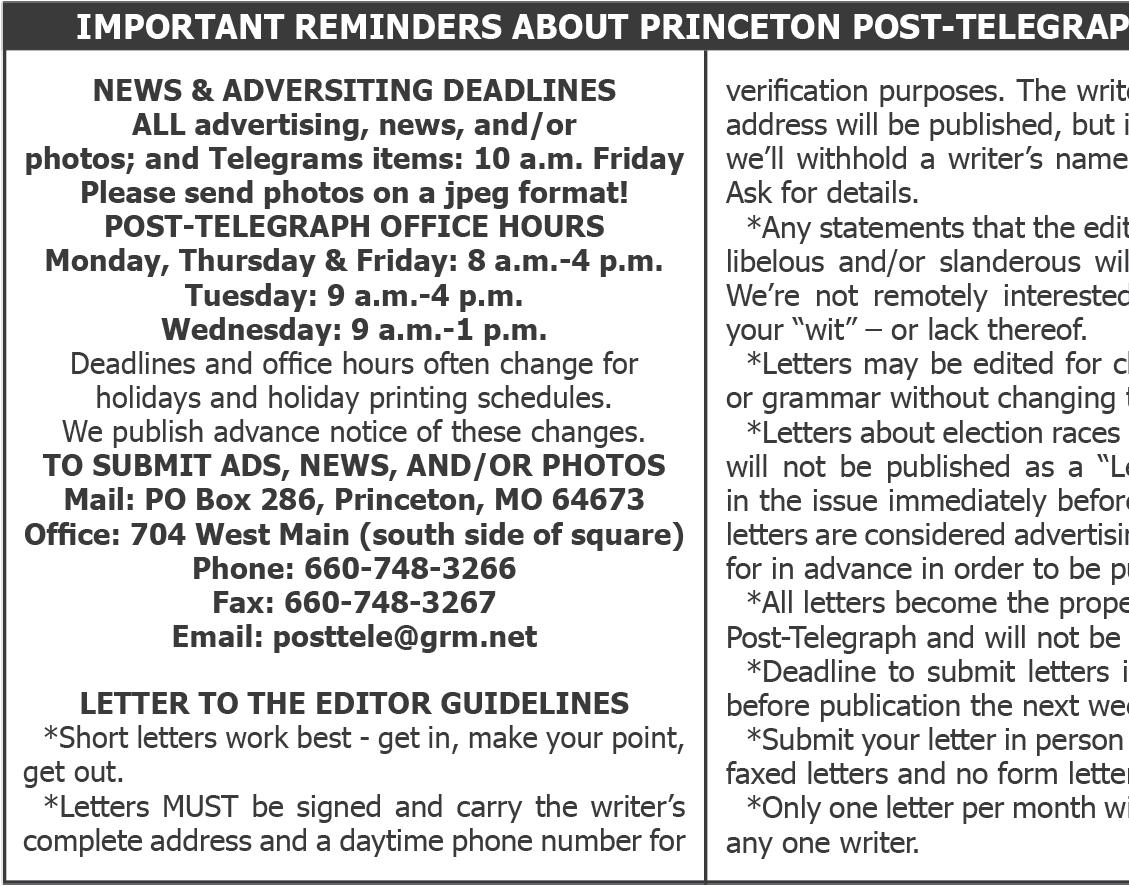 SUBSCRIBE to the Princeton Post-Telegraph today!