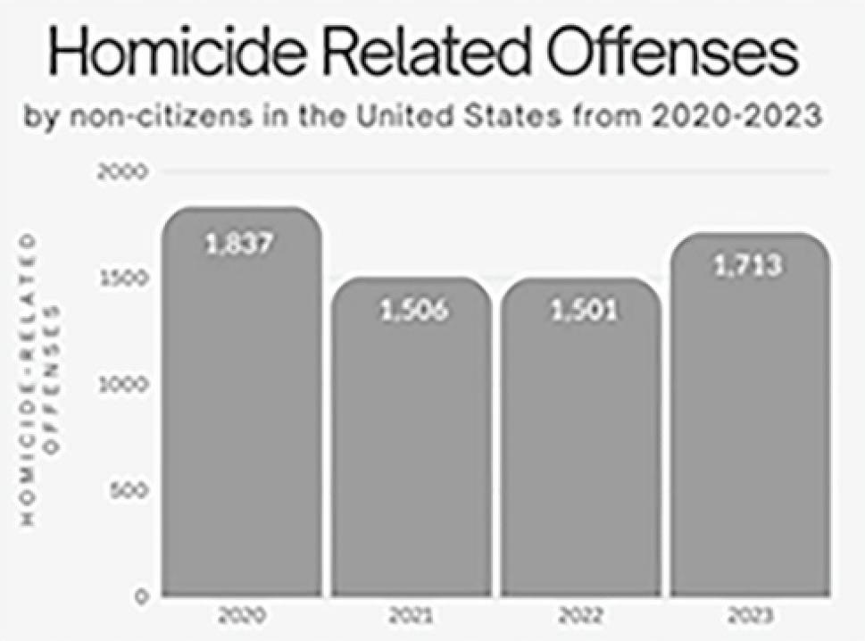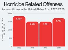 In that same amount of time, the number of homicide-related offenses have remained high with an average of more than 1,600 per year from 2020 to 2023, and convictions for domestic violence, battery, and assault have increased during this period. A 2023 report from U.S. Immigrations and Customs Enforcement also found that nearly half of all illegal immigrants arrested here in the U.S. have multiple prior criminal charges and convictions.