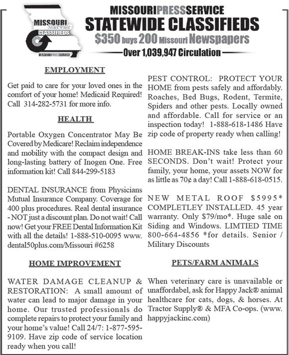 Published weekly by Blackbird Creek Printing Company, 111 S. 16th Street, Unionville, Missouri. Periodical postage at the Post Office in Unionville, Missouri 63565