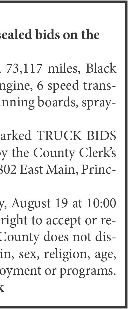 All real estate and/or houses, and all rental housing and/or property, advertised in the Princeton Post-Telegraph newspaper is subject to the Federal Fair Housing Act, which makes it illegal to advertise any preference, limitation or discrimination based on race, color, religion, sex, handicap, familial status or national origin, or intention to make any such preference, limitation or discrimination. We will not knowlingly accept any advertising for real estate which is in violation of the law. All persons are hereby informed that all dwellings advertised are available on an equal opportunity basis.