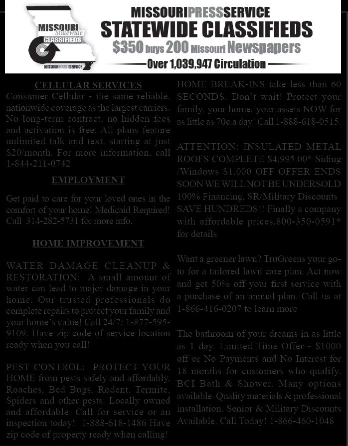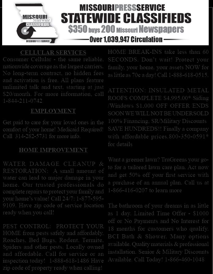 Published weekly by Blackbird Creek Printing Company, 111 S. 16th Street, Unionville, Missouri. Periodical postage at the Post Office in Unionville, Missouri 63565