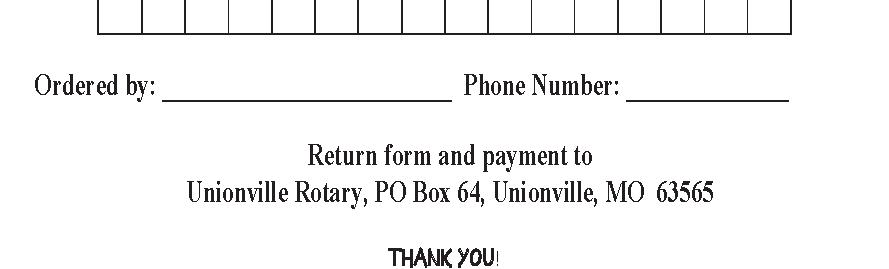 POSTMASTER: Send address changes to: The Unionville Republican, P.O. Box 365, Unionville, MO 63565-0365. Ron Kinzler, Publisher Karen Bradshaw, Editor Mindy Clark, Advertising northmissourinews.com