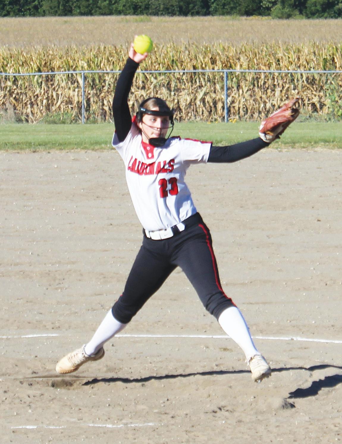 PRESTON COLE/Princeton Post-Telegraph Mercer pitcher Makenzie Hagan delivered a strike to an East Harrison batter Saturday morning in the