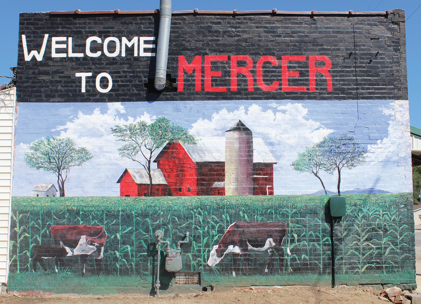 life to an otherwise plain, boring exterior wall on the west side of Mercer Pizza Plus with this colorful, rural-themed mural on behalf of the Mercer County Area Development Corporation. Read about the mural and more below.