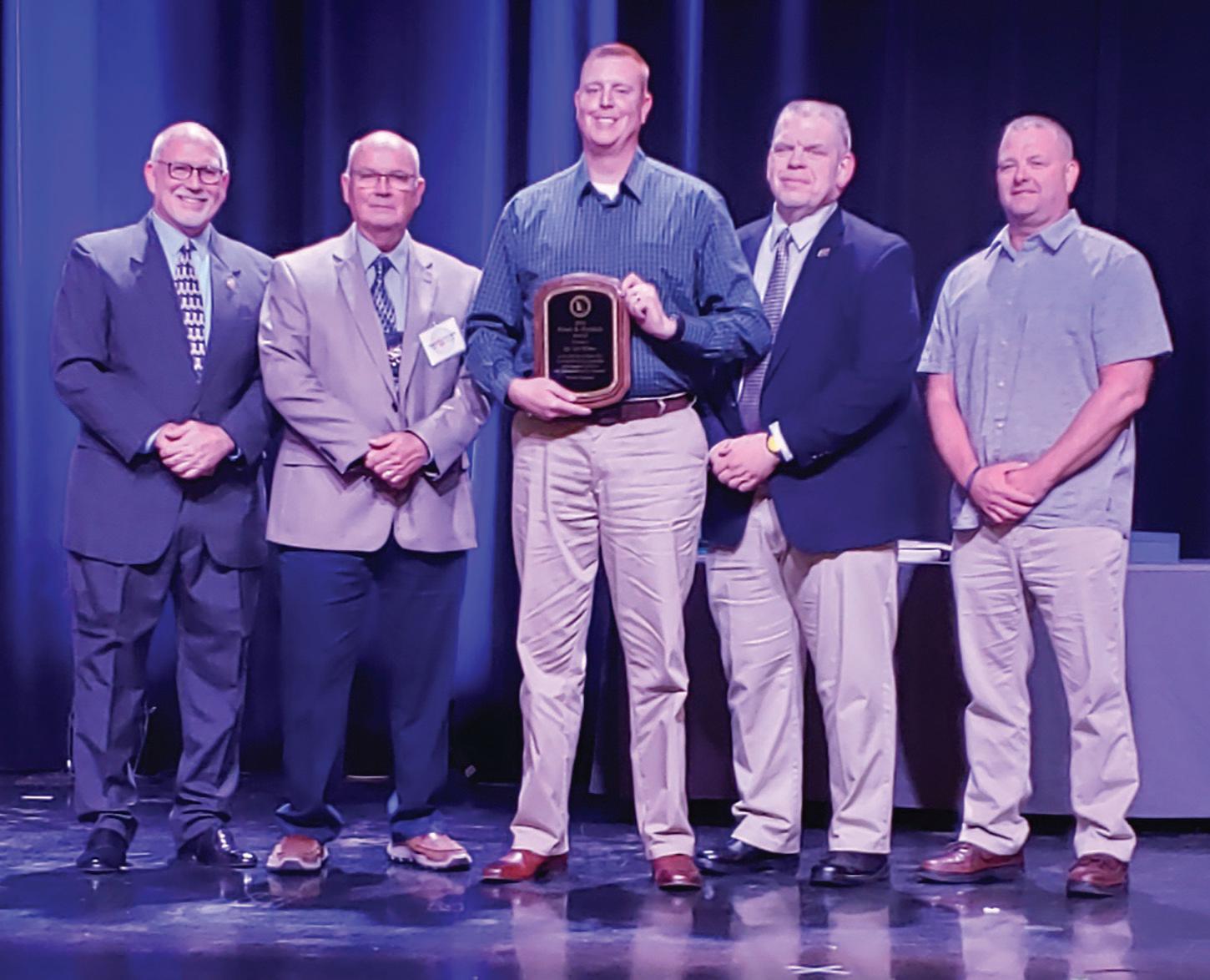 Trenton Police Department Sgt. Jeb Walker (center) receives the Enoch B. Morelock Award from Law Enforcement Coordinator Les Kerr (at left) and LECC Executive Committee members Sheriff Randy Strong, Sheriff Bill Puett, and Chief Mike Stolte.