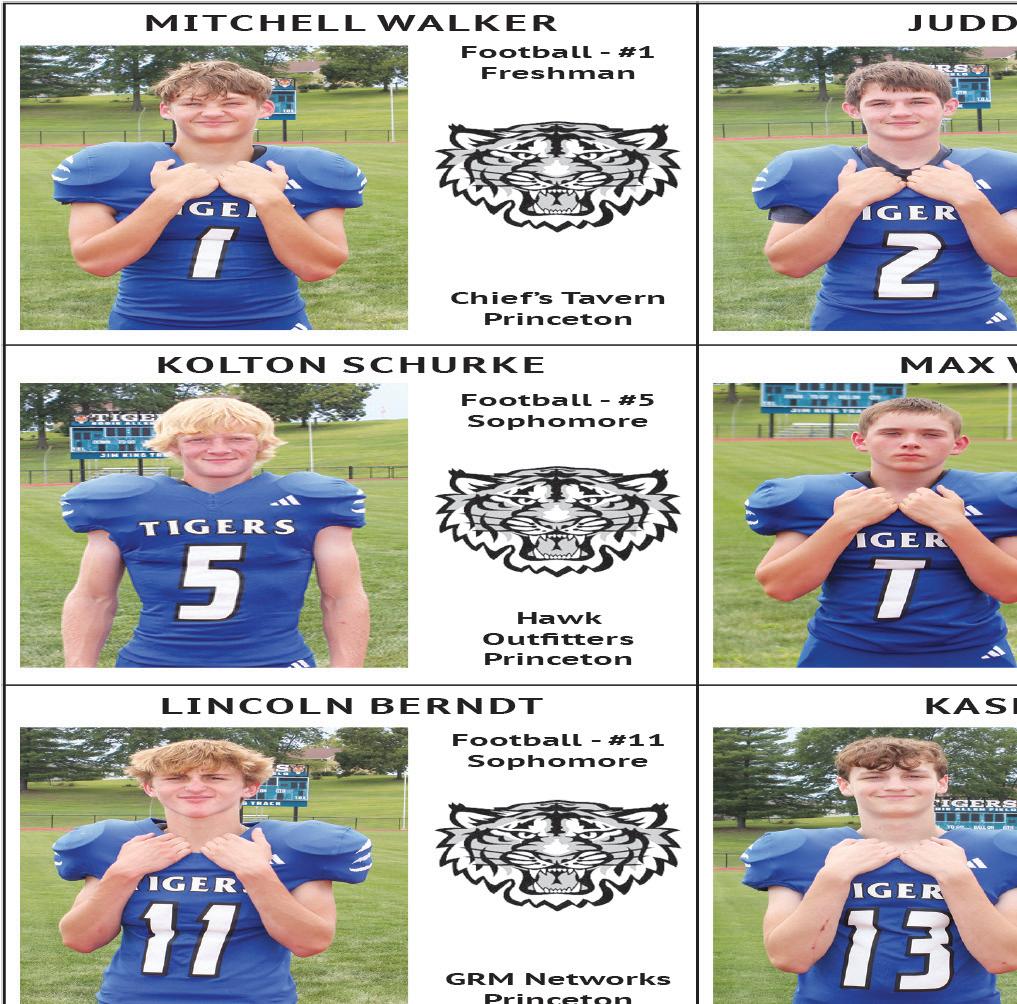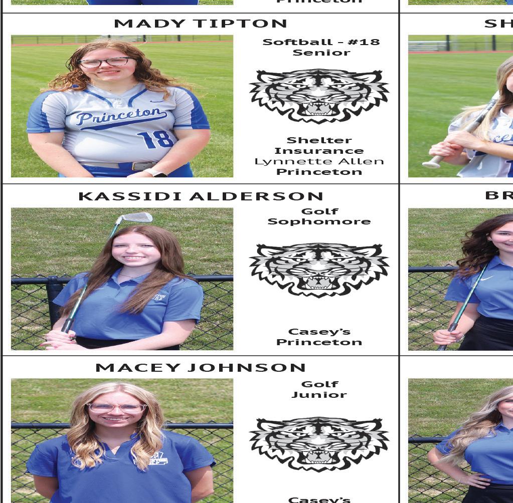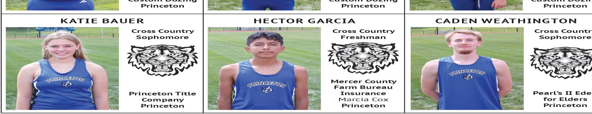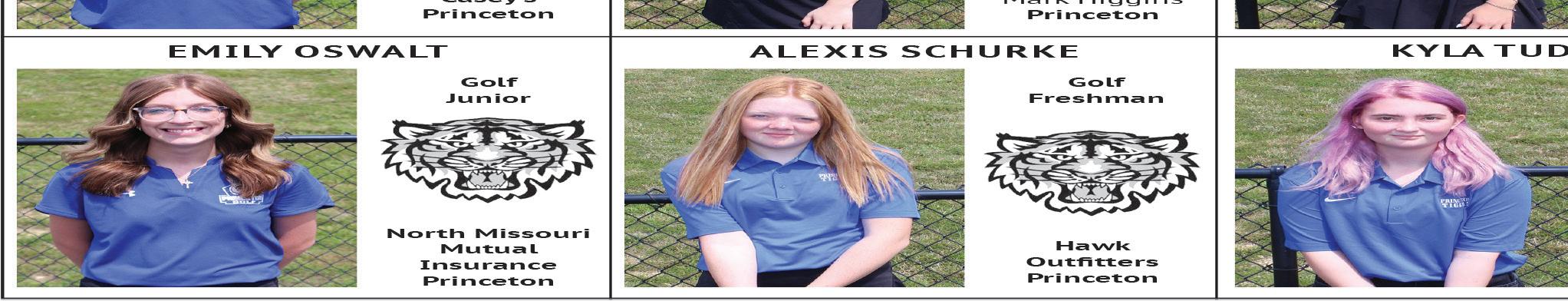 Tiger scores: Hailee Hein 55, Kassidi Alderson 60, Emily Oswalt 64, Gracie Mitchell. Team score: 245, second. at Albany, Mo., Sept. 23 (2-girl team best shot) Hein/Alderson, 43-53–96 (tied/7th); Mitchell/Remi Lewis, 57-58–115; Oswalt/Macey Johnson, 62-57–119. Princeton cross country at Chillcothe, Mo., Sept. 26 High school (JV) - Boys: 3. Caden Weathington (medal); 11. Hector Garcia. Girls: 5. Katie Bauer (medal). Times not available.