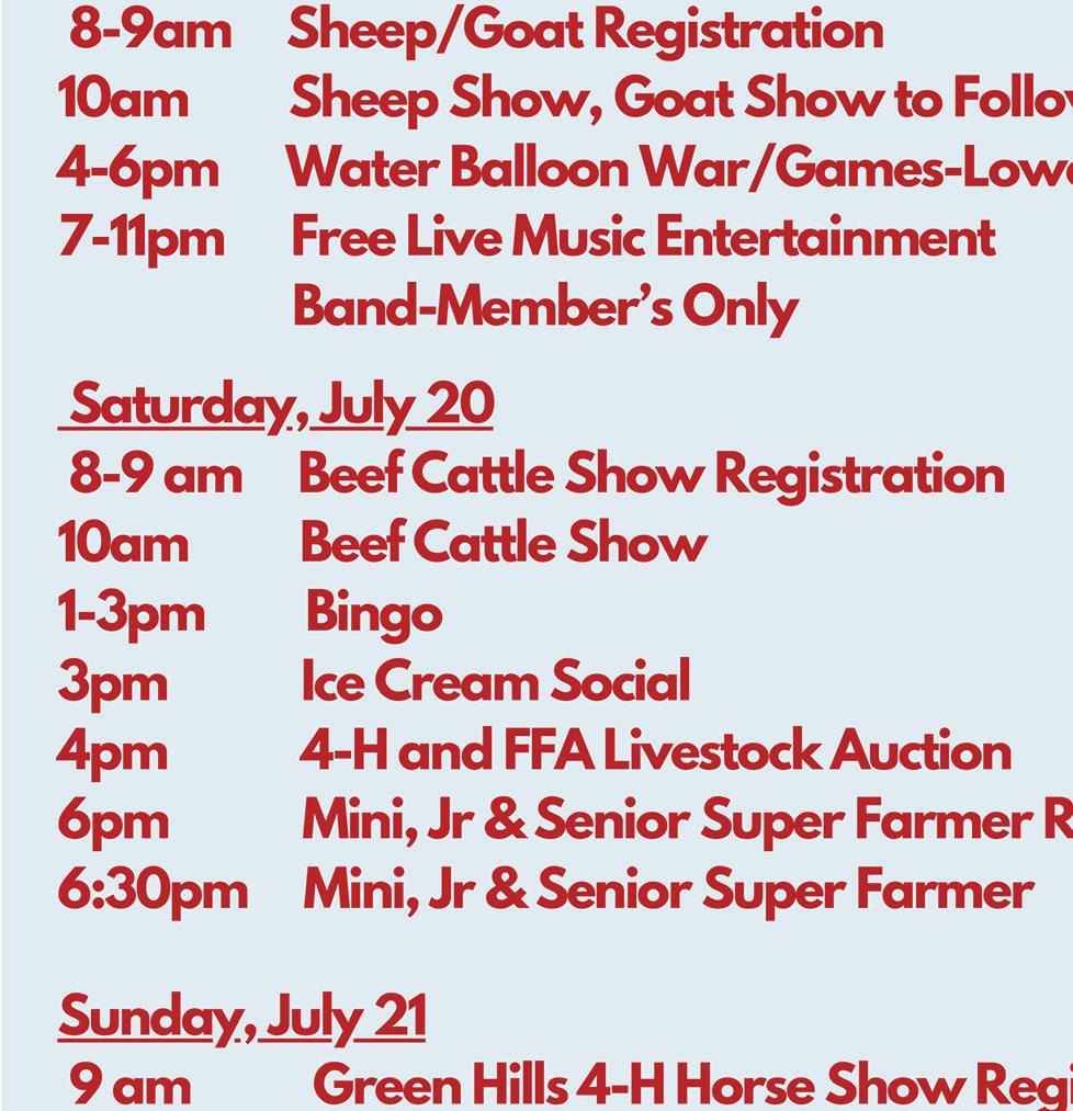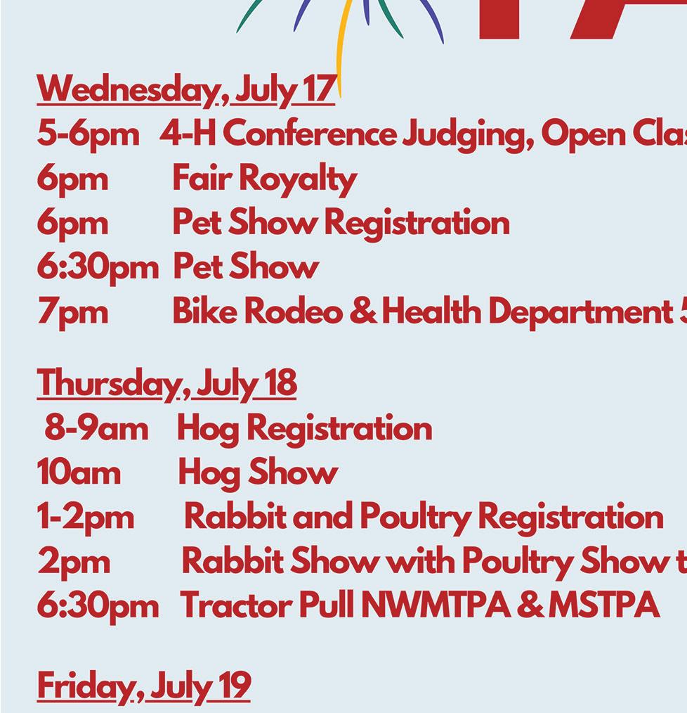 A complete schedule appears on Page 4 of this week’s Post-Telegraph Wednesday events include 4-H Conference and open class exhibit judging, the introduction of fair royalty and the pet show.