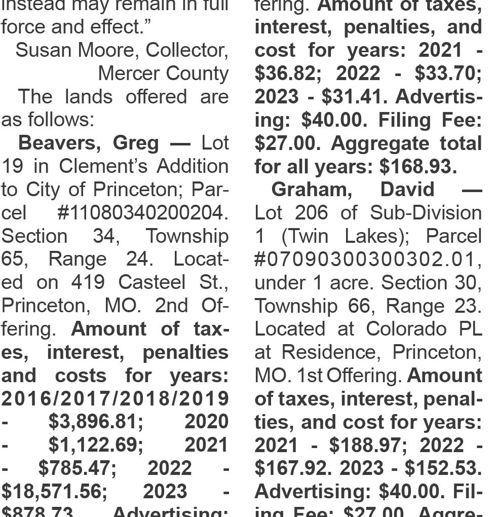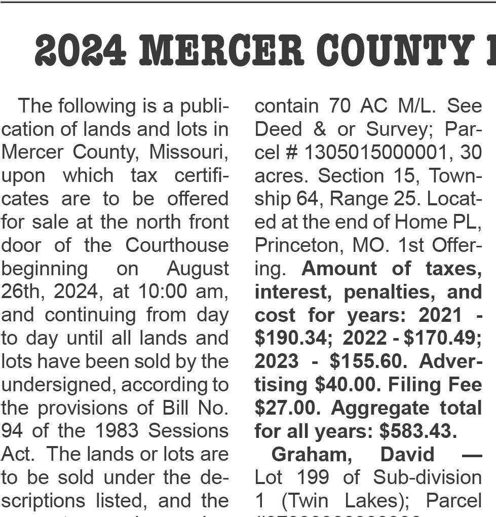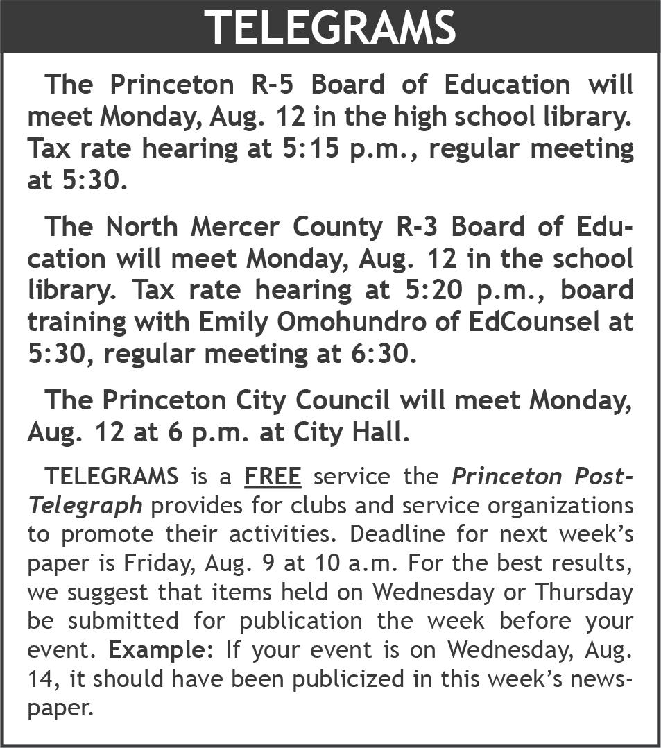 The limit of liability of the Princeton Post-Telegraph takes no responsibility for advertising, legal and/or non-legal, not published. The Princeton Post-Telegraph takes no responsibility for the non-publishing of news, letters to the editor, and/or press releases.