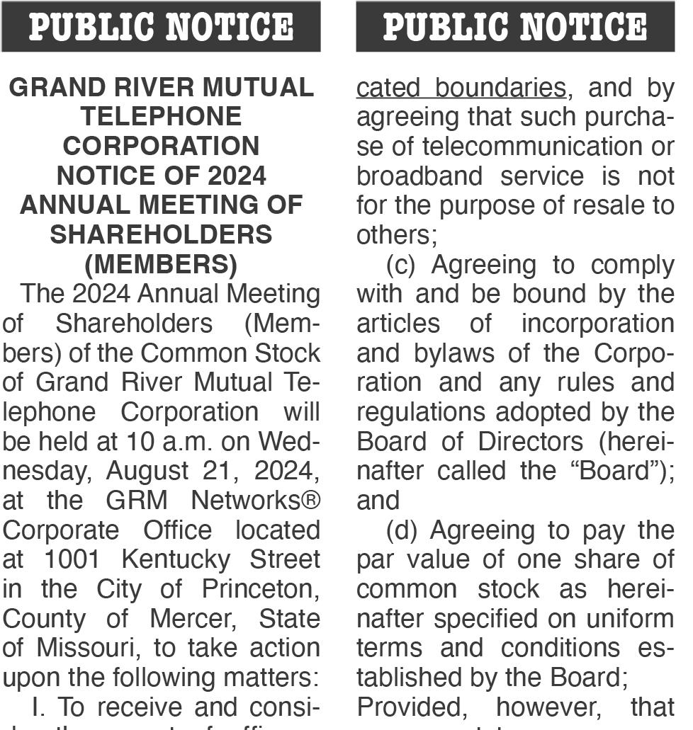 TRENTON, Mo. Grundy Electric Cooperative’s Annual Membership Meeting was held Aug. 1 at the North Mercer R-3 School in Mercer, Mo. Over 250 members and guests began the evening with dinner served by Mercer County 4-H members. Entertainment was provided by Jeremiah Hamilton and Makayla Mejia.