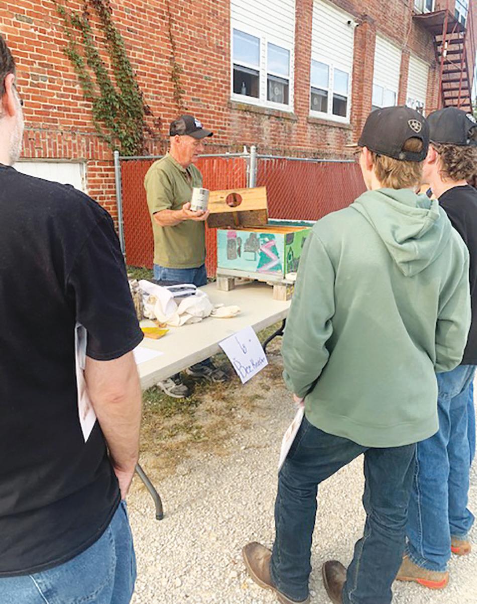Cainsville Community Betterment presented Cainsville History Day on Friday, Sept. 13 at the Cainsville R-1 school. “We had eight demonstrators sharing beekeeping (from left), fur trapping and blacksmithing (pictured),” said Principal Mike Tipton. There were also candlemakers, soap makers, stained glass demonstrations, sewing presentations, and a guided tour of historical spots around Cainsville. Students in grades K-12 participated in this event. “We would like to thank Cainsville Community Betterment and all of our demonstrators,” Tipton said.