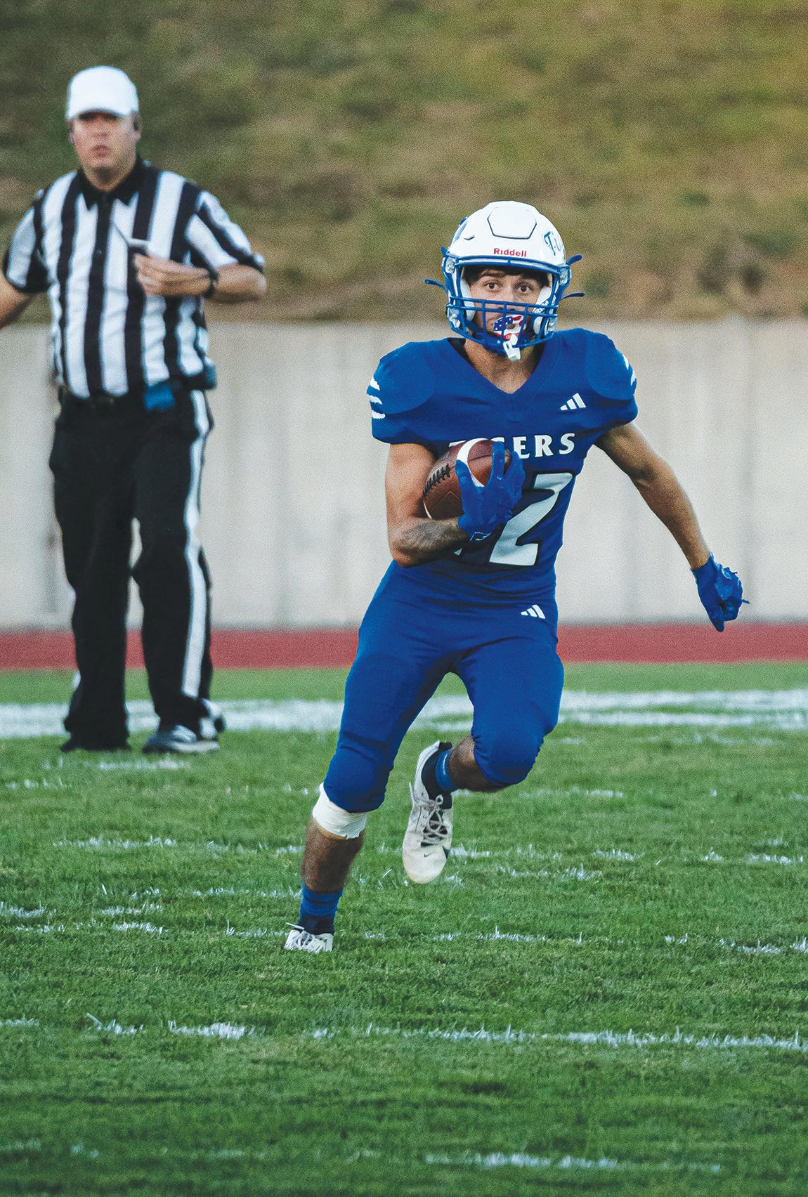 Evans had the biggest individual night for Princeton (13, 1-1 GRC), completing 22 of 34 passes for 284 yards and seven touchdowns, with three interceptions. He was also the Tigers’ leading rusher, with 94 yards on 13 carries.