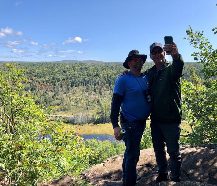 A beautiful 3/4 mile hiking path with huge views of the surrounding landscape Vast forests and Lake Superior views