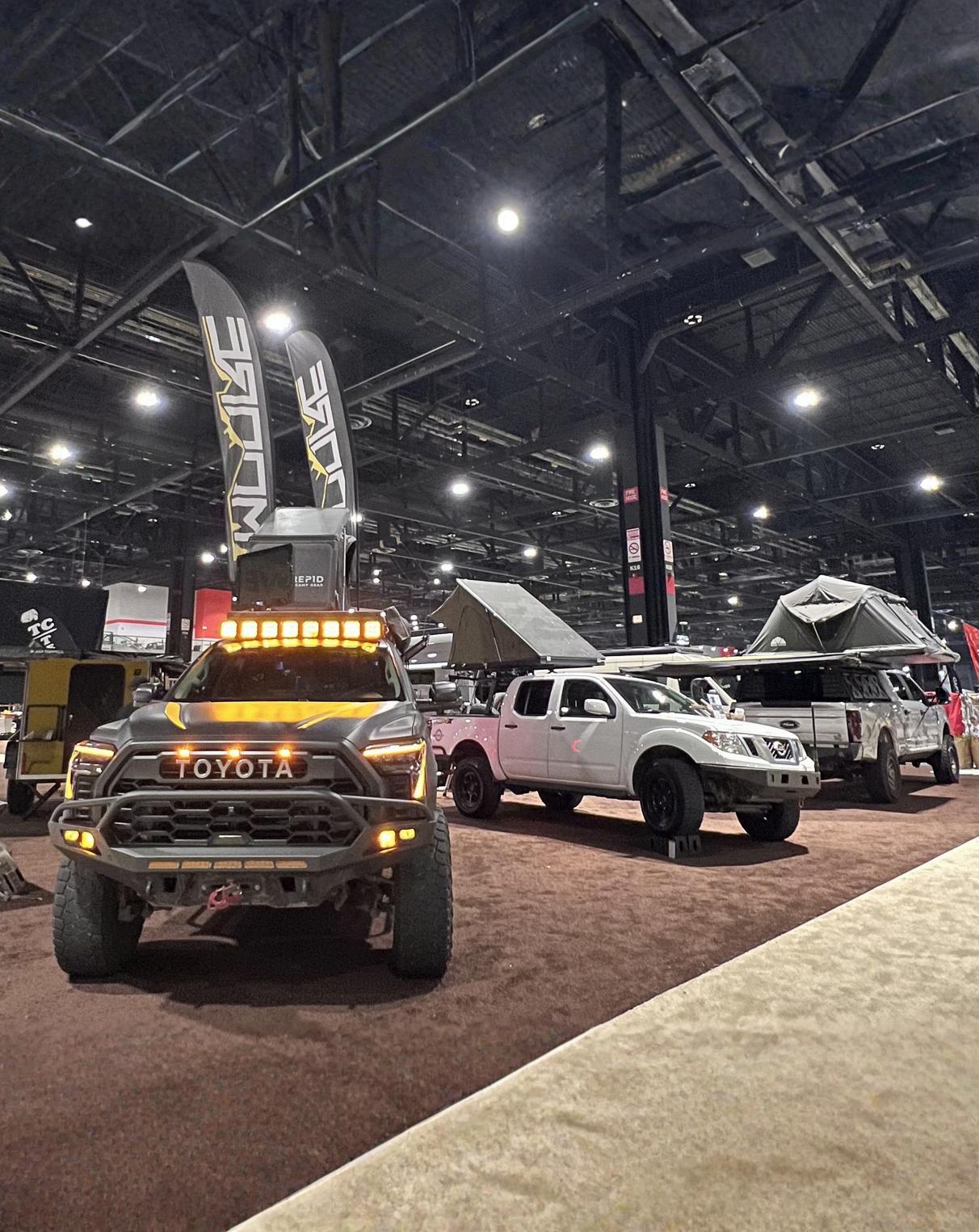 Camping overnight inside McCormick Place was one of those experiences that felt equal parts surreal and ridiculously fun After the crowds cleared and the lights dimmed, the show floor took on a completely different energy. What had been a busy, polished display space during the day turned into our own little camp for the night, with rigs parked under high ceilings and our rooftop tents popped out like we were deep in the backcountry