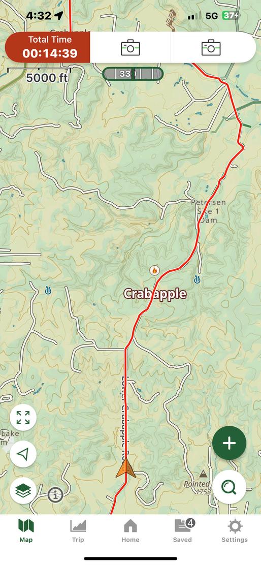 The fire seemed to fill the horizon as I drove through town to the meetup location From the mountain I had a pretty clear view from the fire, so I started watching local updates and wildfire reports on Twitter (yeah, okay, X) I snapped a few pics and posted what I was seeing: smoke rising just a few miles north of town. Planes and helicopters circling in observation. @TxStormChasers retweeted one of my shots stating “Bit of pyrocumulus noted with #Crabapplefire smoke plume.” I hoped that the fire was to the east of our route as I turned on the wildfire layer in Gaia I did not see anything and at that point I was a little annoyed with Gaia that there was no fire indicated on the layer but also relieved at the thought of it being too small or too early for the info to be populated to the app. But either way, I thought it too far east.