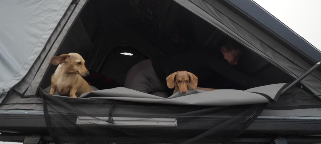 mosquitoes, we doused eve spray, quickly leveled the set up the rooftop tent be into its somehow mostly m interior Once inside, we each other, questioning t decisions Let’s go camp The bugs won’t be that b Mickey turned circles on h corner of the tent then f only to get up and spin cir direction before once aga and giving us a side-eye angry bird protested our harsh call breaking the s night. We swatted rouge m we settled into our sl hopeful that tomorrow wou rain, and fewer mosquitoes