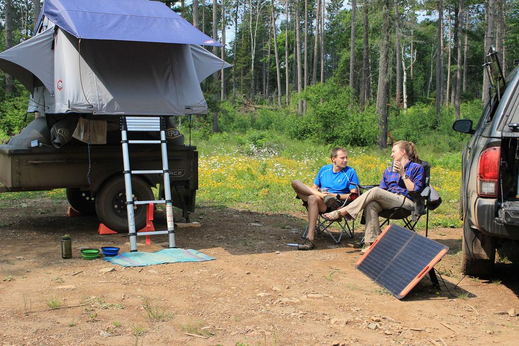 The next morning we aw sunshine, which drove o mosquitoes and angry bird of dusk the night before some wildflowers, but now we could see that the adjacent clearing was covered in wildflowers- daisies, Indian paintbrush, trefoil, clover, and even wild strawberries carpeted the clearing. Breakfast made and solar panels facing the sun, we settled into our camp chairs and contemplated what to do with our day We finally decided that today would be an exploring day. After lazily finishing breakfast and coffee, finally feeling ready to take on the day, we cleaned up camp and set off to explore the backcountry Two areas in Minnesota’s Arrowhead region, which is roughly defined as the area between Lake Superior and the Canadian border, get most of the glory- the North Shore of Lake Superior, and the Boundary Waters Canoe Area Wilderness But between them lies millions of acres of the Superior National Forest Here there are lakes to explore- not as pristine as those in the Boundary Waters, but much easier to access There are miles of gravel roads, old logging landings, and streams to explore The famous lakeshore is a short drive over the ridge of the Sawtooth Mountains These mountains may look like molehills next to the Rockies or or even Appalachians, but for those of us in Minnesota, they are big enough to be called mountains nonetheless This area