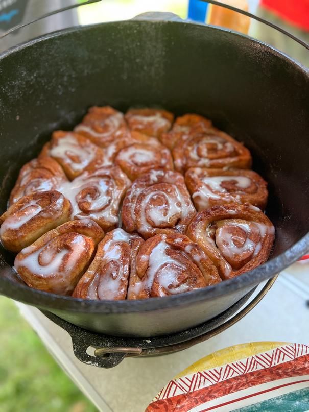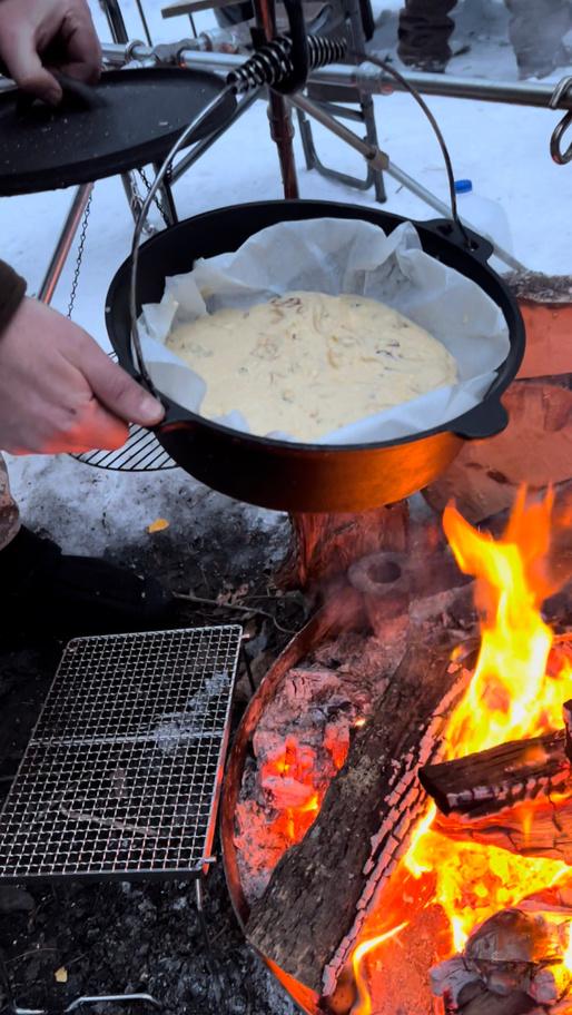 Left: Camp dessert in the Dutch Oven