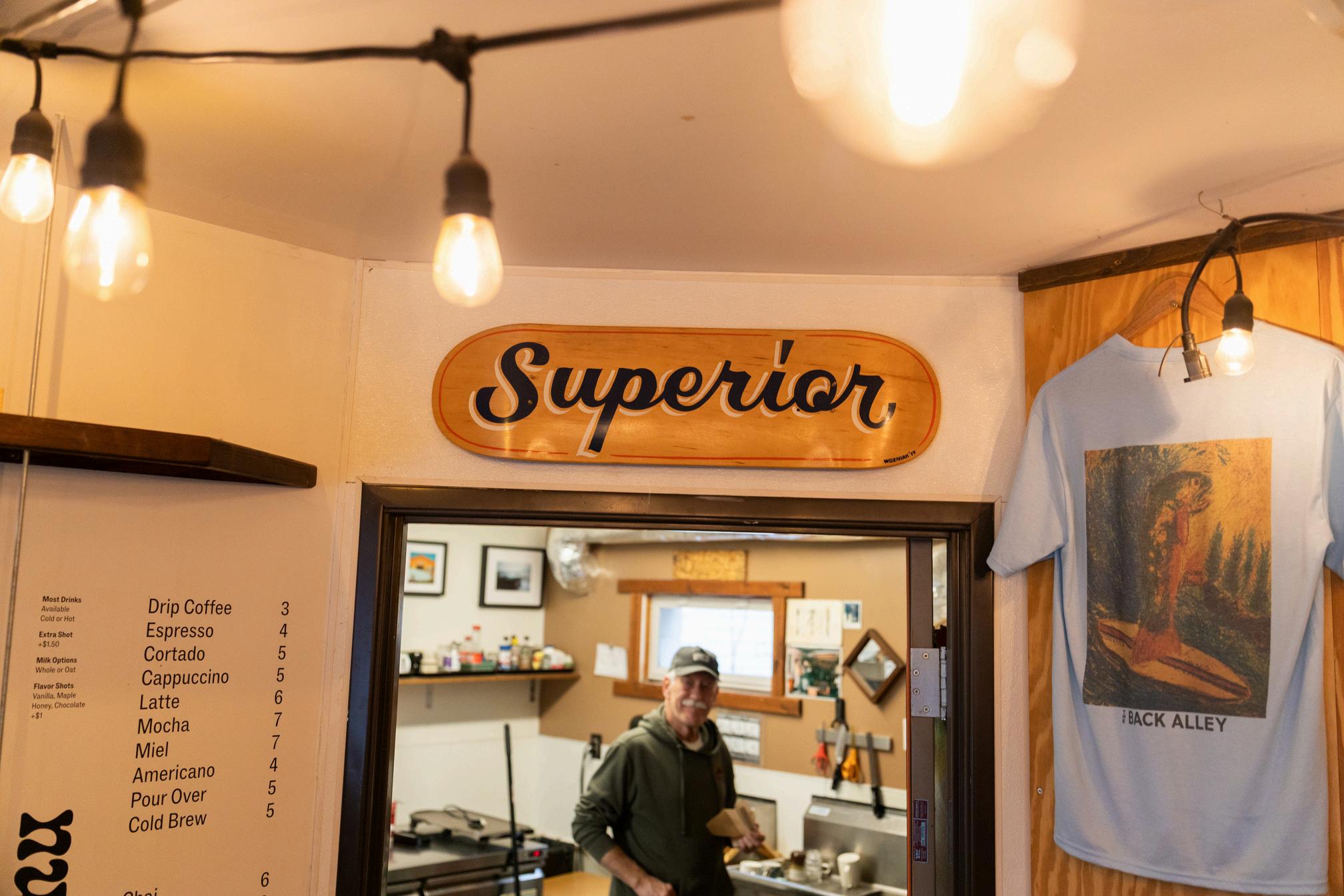 I heard a storm was in the forecast which makes for some “sweet swells” along the North Shore, so I headed to Duluth. First stop - The Back Alley - a local surf shop/coffee shop where I was hoping to get some intel on the best places to find surfers.