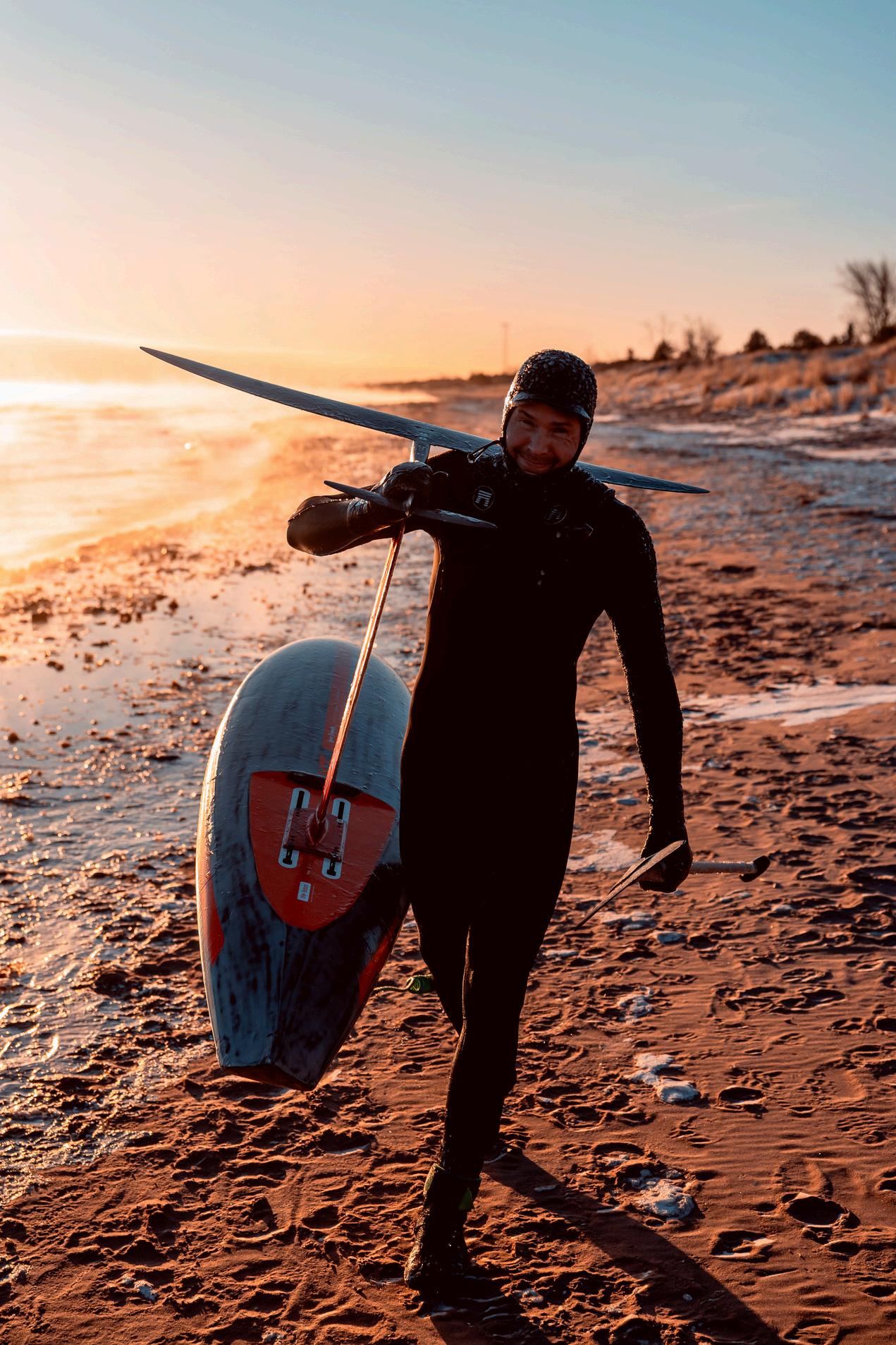 It wasn’t long before Jake arrived. A surfer in the area for the last 10 years! But it wasn’t any old surf board he was carrying. It was a hydrofoil! He agreed to let me get some shots of him on this -14 degree morning. He and I spent a couple hours out there in the cold and boy did it pay off. These are some of my favorite pics from the North Shore.