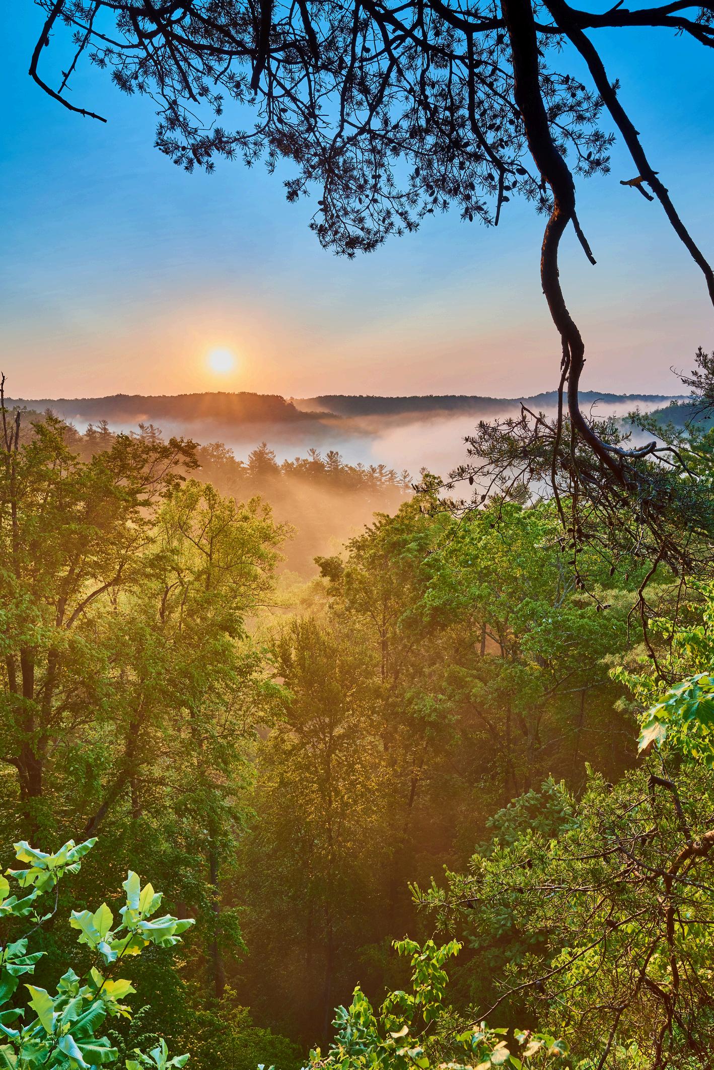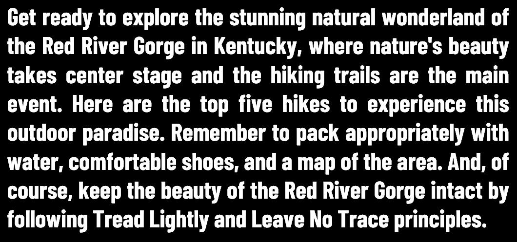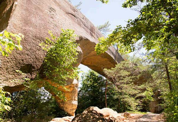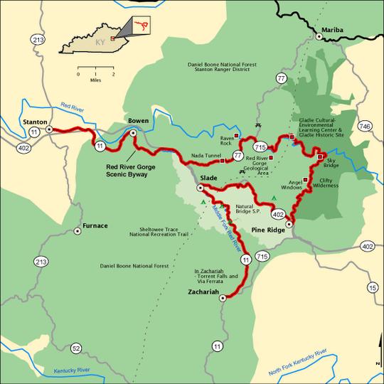 As you turn onto State Route 715, you ll encounter the Red River Gorge Geological Area Here, you can discover the spectacular rock features, including sandstone arches and towering cliffs that attract thousands of viewers each year Here, visitors can enjoy year round hiking, camping, canoeing, and wildlife viewing alongside other recreational activities Just a few bends from the Red River Gorge Geological Area, you’ll find the Gladie Visitor Center, where you can learn about the cultural heritage, unique resources and spectacular geology found within the boundaries of the Red River Gorge Geological Area and Clifty Wilderness Climb up to the Sky Bridge, a great place to stop for a picnic
