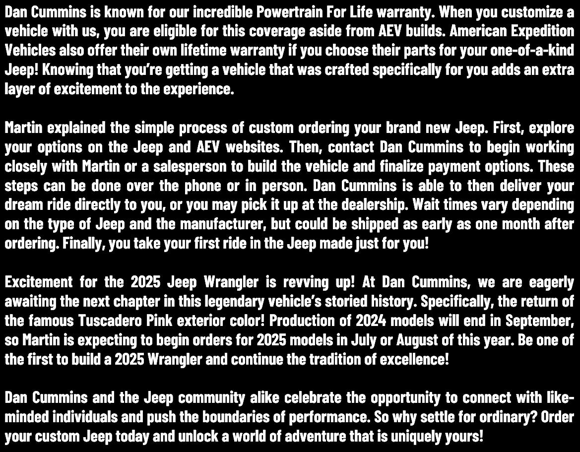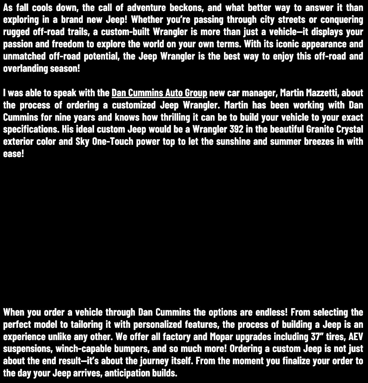 ORDERING A CUSTOM JEEP IS NOT JUST ABOUT THE END RESULT—IT’S ABOUT THE JOURNEY ITSELF.