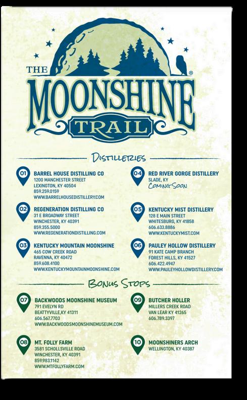 Imagine a trail that winds through the heart of the Bluegrass State, where small distillers with their unmatched expertise bring the age-old tradition of moonshining to life Each stop along the trail is a chance to taste unaged spirits that carry the essence of Kentucky’s rugged history. It’s a symphony of flavors that dance on your taste buds, a true homage to the artistry of the past.” -MoonshineTrail.com