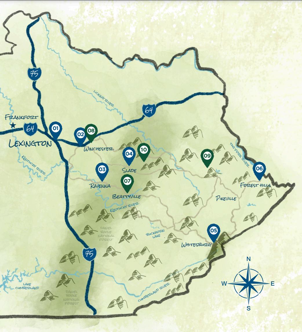 The Kentucky Adventure Tour (KAT) offers a free, GPS-guided experience through southeastern Kentucky and its neighboring states Basic knowledge of GPS or GPS applications is necessary for navigation Laurel County showcases the Kentucky Adventure Trail, which boasts stunning landmarks such as the Battle of Camp Wildcat Mountain, the Twin Arches, various creek crossings, and Laurel River Lake Experience a mix of paved, gravel, and dirt roads within the picturesque Daniel Boone National Forest. Your journey begins in London, Kentucky, an ideal starting point for your loop on the Kentucky Adventure Tour. You ll find convenient access to shops, restaurants, and overnight accommodations, including hotels, short-term rentals, and camping options