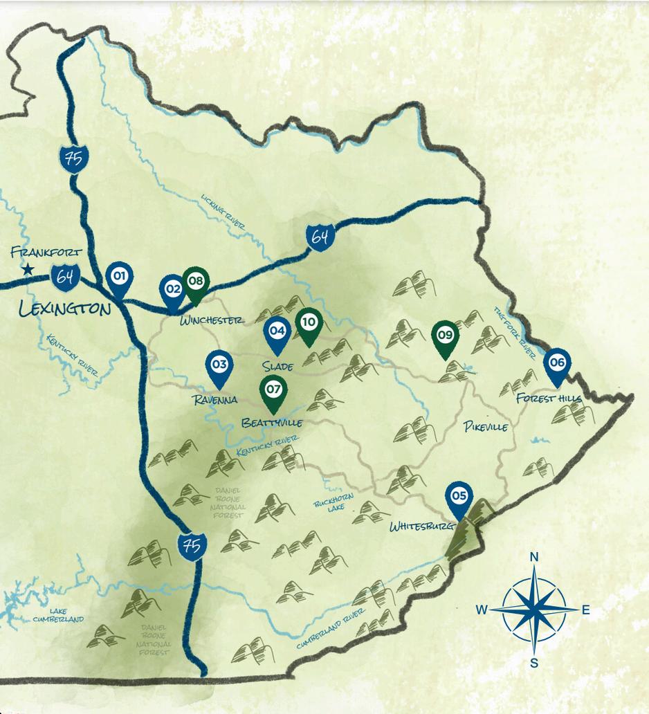 The byway then continues to wind through the Kentucky mountains Follow State Route 402 up to Slade before traveling south on State Route 11 to Zahariah There are many options to stop and hike along the way. While in Zachariah check out the natural beauty of the Torrent Falls and try out an old Italian climbing style, the Via Ferrata, to get a new view of the falls While in Zarachiah, stop at a local restaurant for some farm to table fare